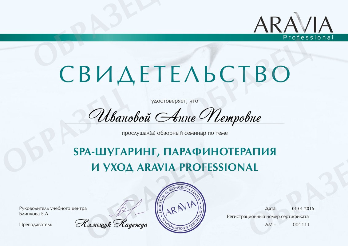 Я прошла все обучения которые есть по депиляции и получила сертификат Эксперта Spa- шугаринга.